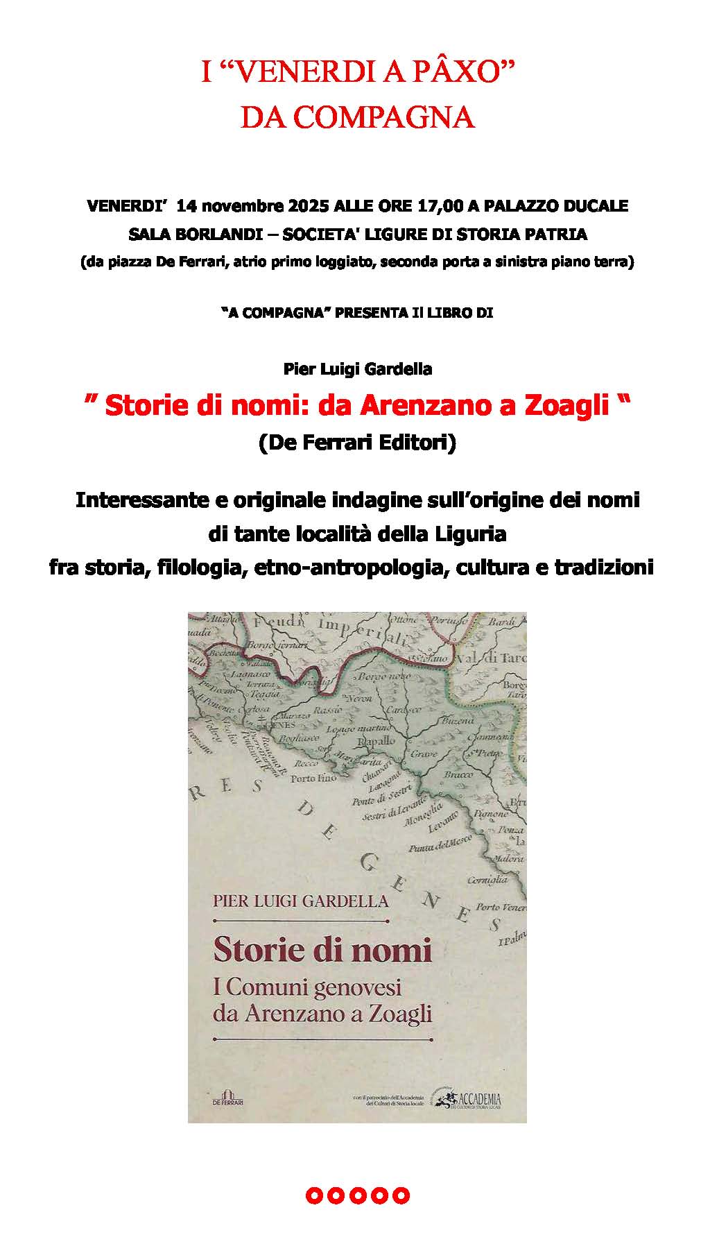 VENERDÌ 14 NOVEMBRE 2025 ALLE ORE 17,00 A PALAZZO DUCALE SALA BORLANDI – SOCIETÀ LIGURE DI STORIA PATRIA (da piazza De Ferrari, atrio primo loggiato, seconda porta a sinistra piano terra)