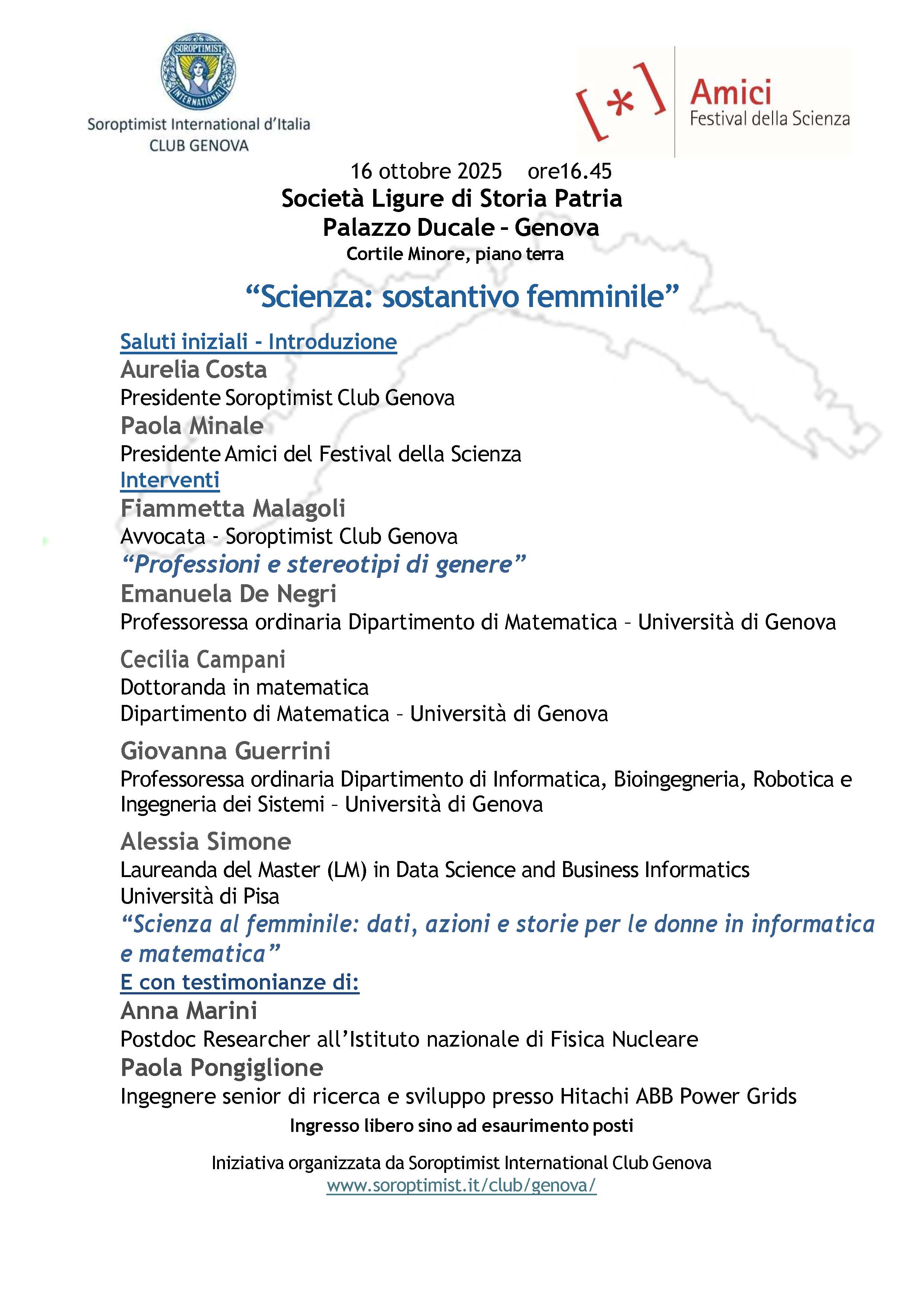 Soroptimist International d'Italia - Club Genova con gli Amici del Festival della Scienza è lieto di invitarvi al convegno