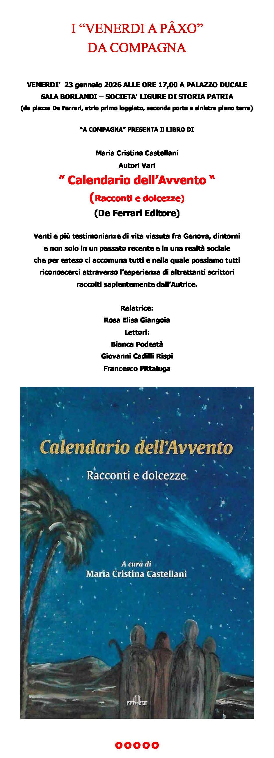 VENERDÌ 23 GENNAIO 2026 ALLE ORE 17,00 A PALAZZO DUCALE